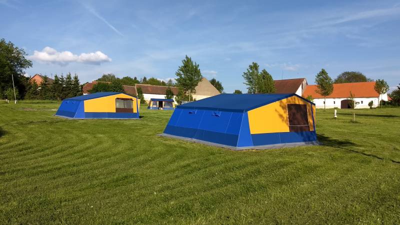 Naast het repareren van tenten maken wij onze eigen tenten en verhuren deze in Tsjechie. Onze tenten staan op Nederlandse campings nabij Praag, Zuid-Bohemen en Moravie.